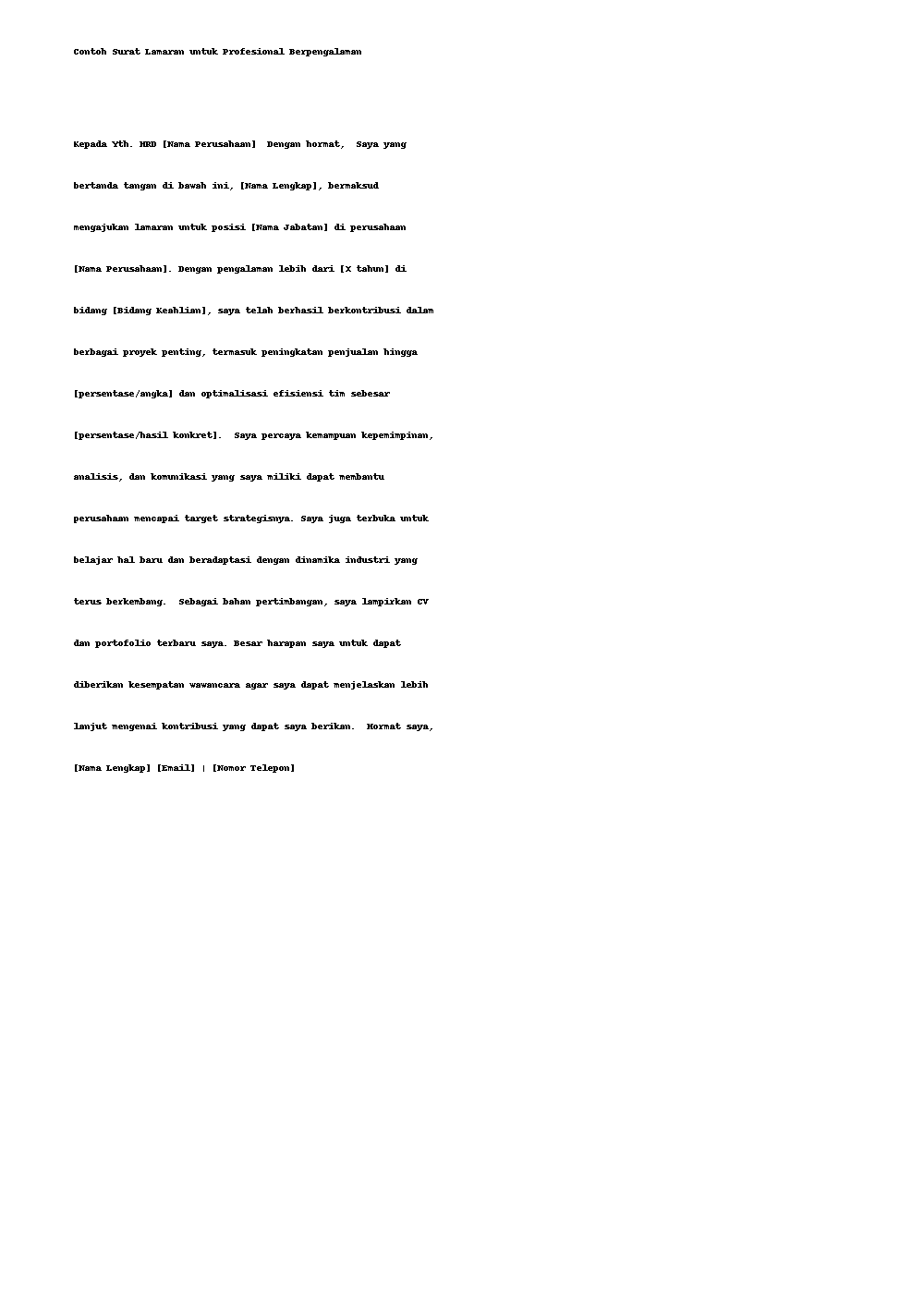 Contoh Surat Lamaran untuk Profesional Berpengalaman