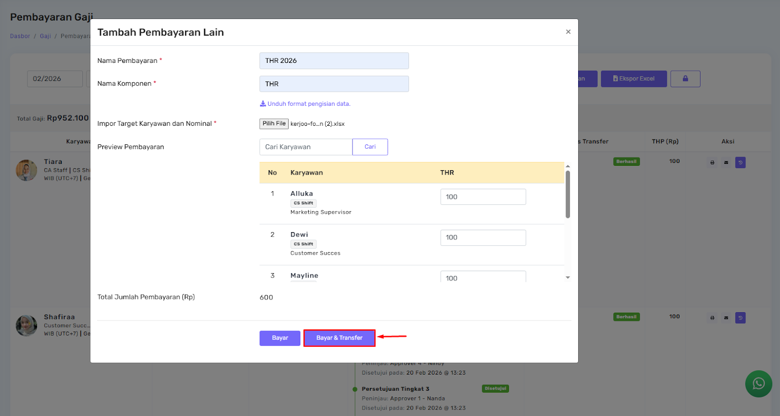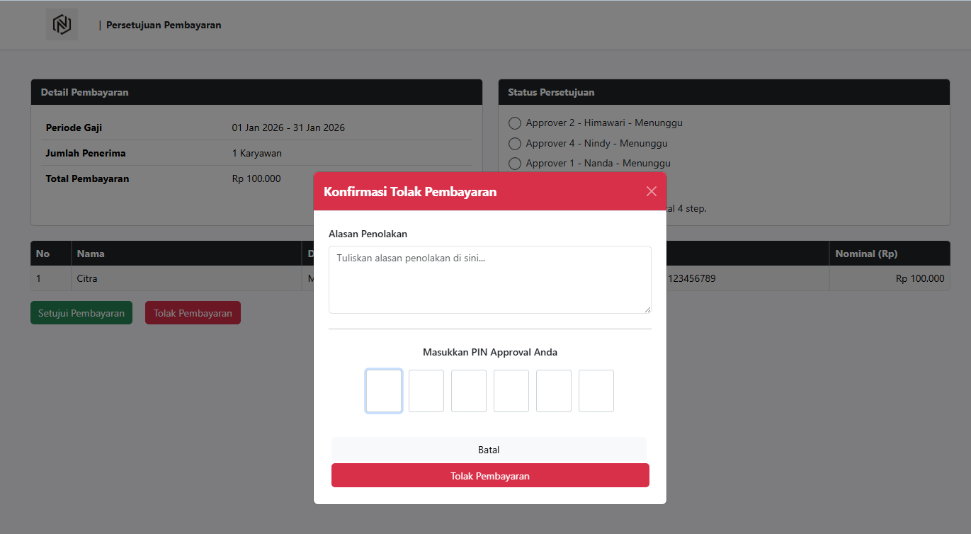 Selanjutnya, alur approval sama seperti proses pembayaran gaji reguler.