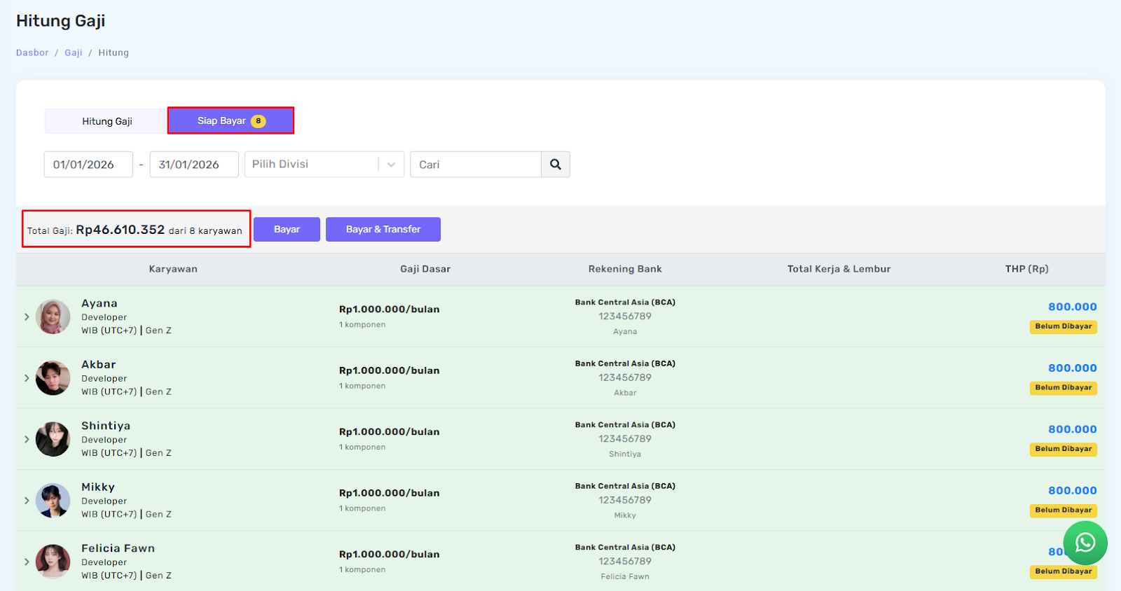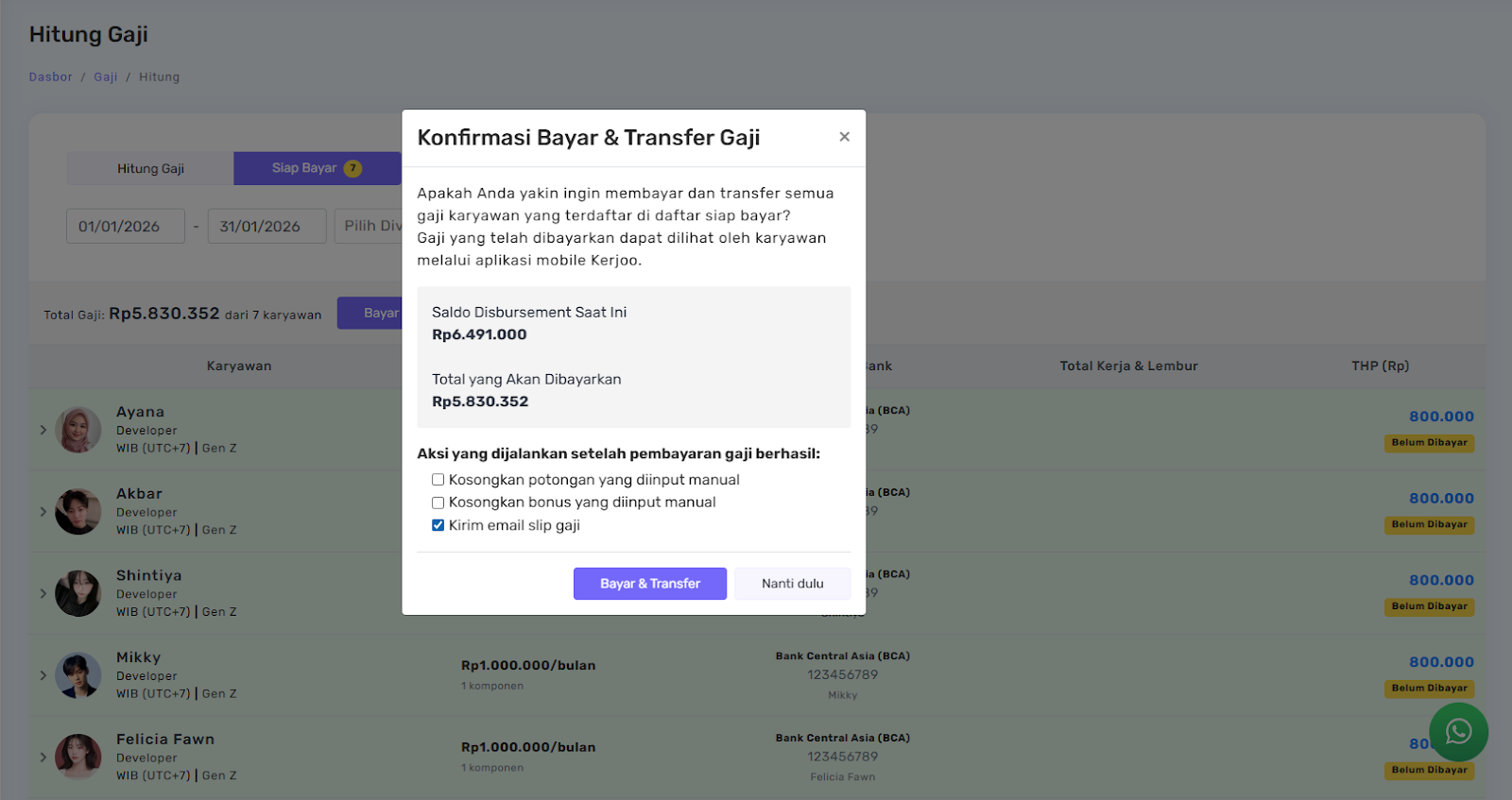 Sekarang masuk ke bagian yang paling dinanti: proses pembayaran gaji.
