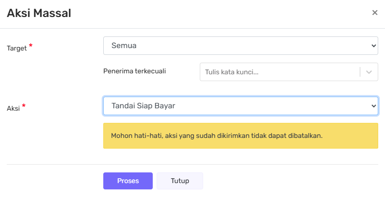 - Pilih aksi Siap Bayar