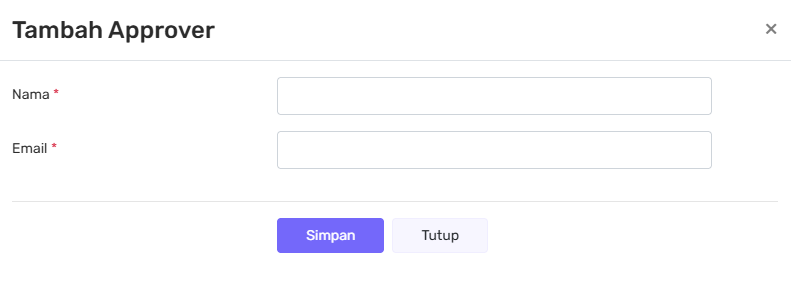 - Masukkan nama dan email approver