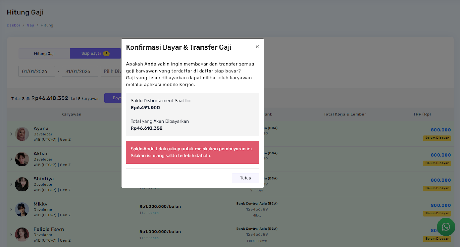 Penting untuk dicatat: Kerjoo tidak mengelola maupun menyimpan dana perusahaan.
