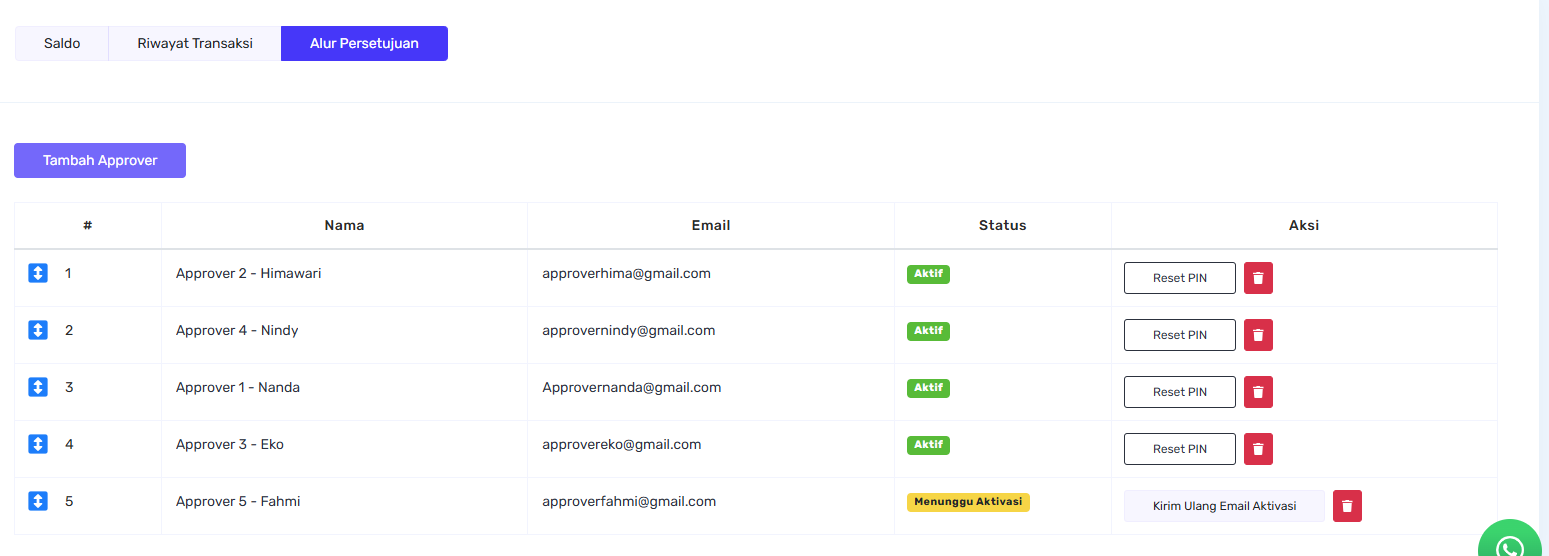 - Klik Tambah Approver