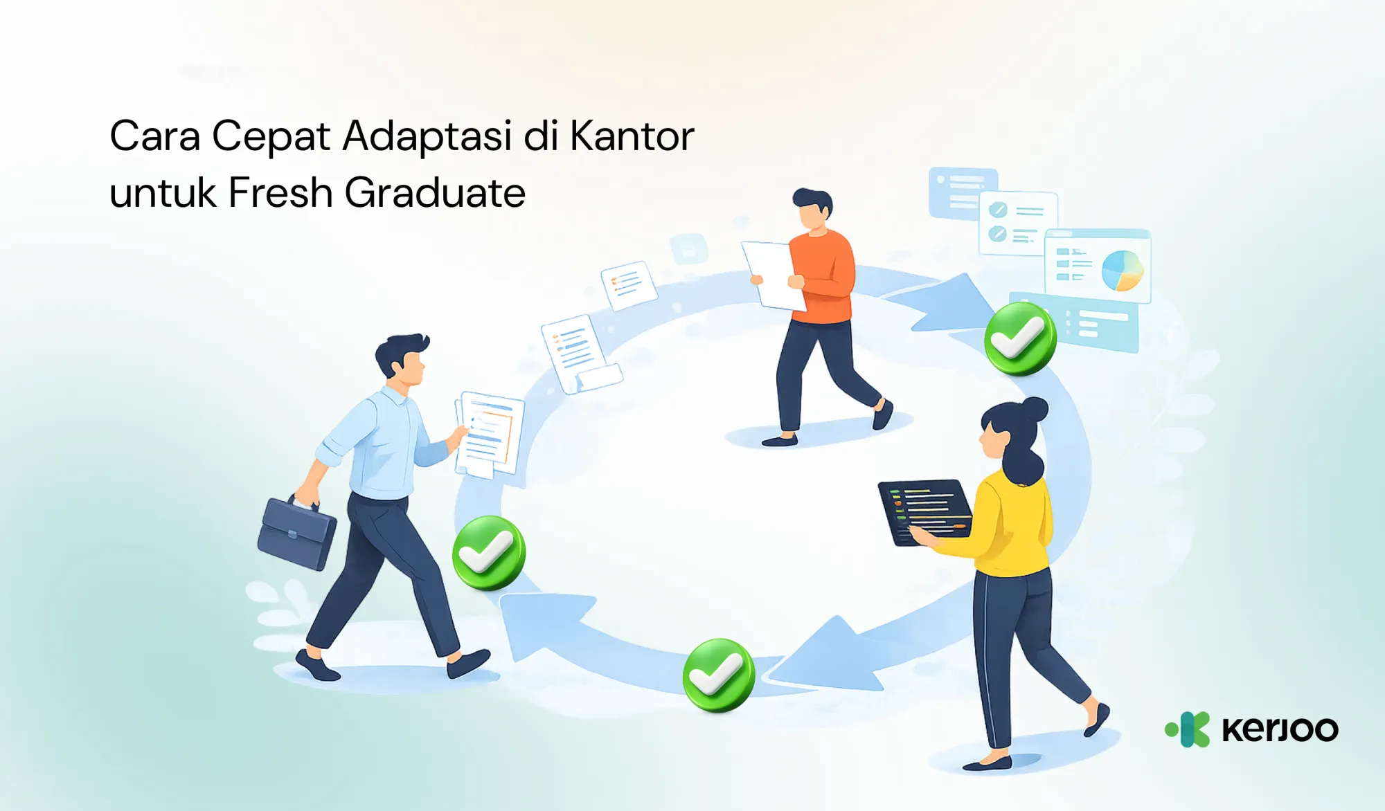 Di tengah proses adaptasi, Anda juga akan mulai mengenal berbagai tools kerja yang digunakan perusahaan. Salah satu yang cukup banyak digunakan adalah Kerjoo, yang membantu pengelolaan kehadiran dan aktivitas kerja secara lebih efisien.