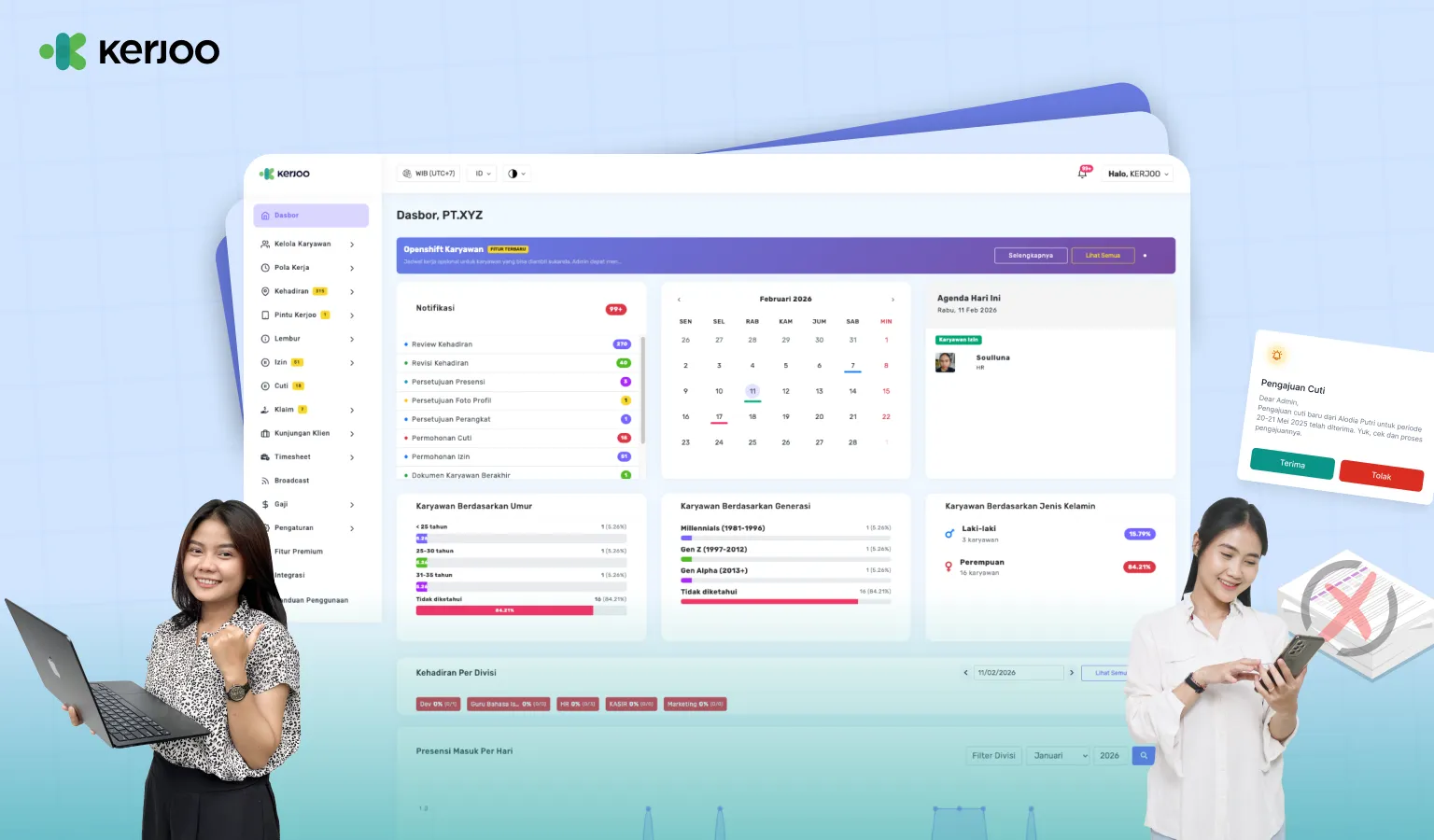Mulai sekarang, biarkan sistem yang bekerja, dan HR fokus ke hal lain yang lebih strategis. Yuk, rapikan proses HR dari akarnya bersama Kerjoo!