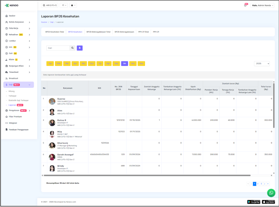 - Kerjoo juga menampilkan Persentase Iuran Ditanggung Perusahaan dan Persentase Iuran Ditanggung Karyawan.